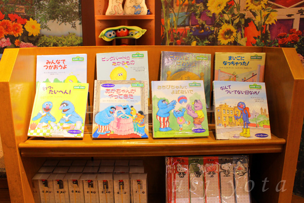これらぬいぐるみの他、衣類やお菓子、コップや耳かきなどのグッズに加え、絵本も販売されています↓