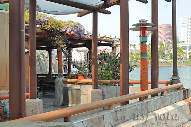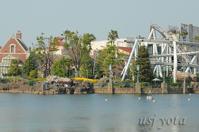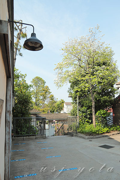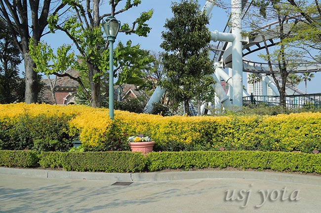下の写真は同じくアミティビレッジですが、並木ではなくジョーズのアトラクション出口の近くに植えられています。