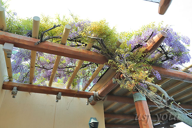 年によると、藤棚から垂れ下がるように花をつけることもありますが、今年は藤棚の上に花が集中しています。