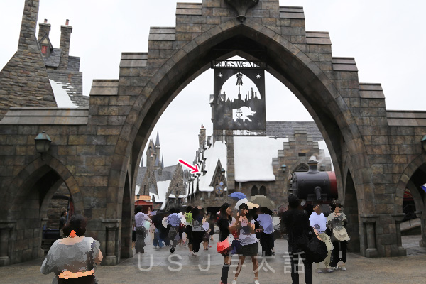 そんなときは諦めるしかないのですが、ホグワーツ城は大きいので前に出なくとも十分楽しめます。