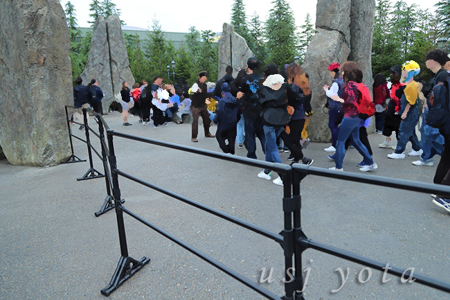 ハリーポッターエリアに行ってみると、入場するゲストと退場するゲストを分ける柵が設置されていました。