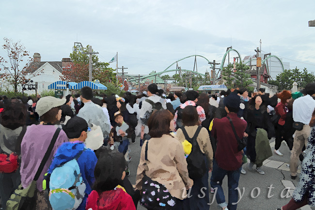 その前日、月曜日は、日曜日と祝日の間にある平日でしたが、この飛び石連休を4連休にした会社も多かったようなのに加え、運動会や日曜参観の代休も重なったせいか、21日の月曜日のUSJは平日ではない混み方をしていました。