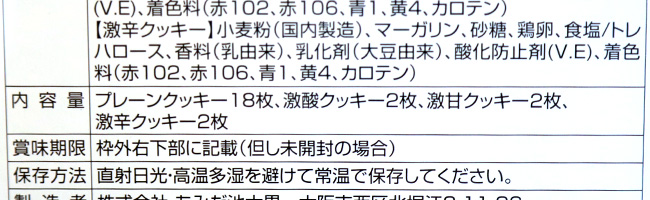 箱の裏に、激酸・激甘・激辛クッキーの内訳が説明されています。
