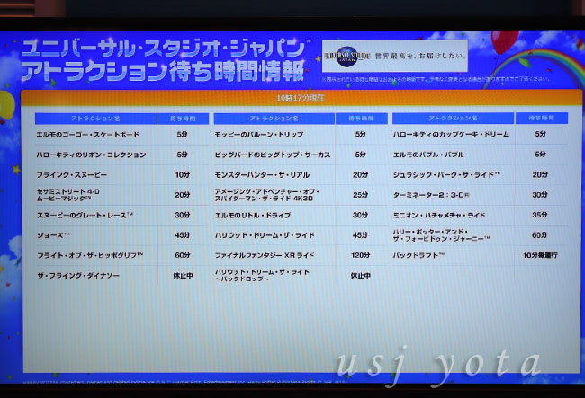 ホテルのロビー階ではUSJのアトラクションの待ち時間を確認できます