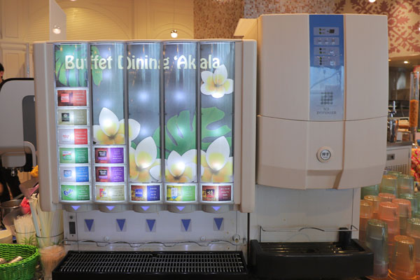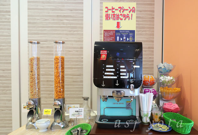 食事を取る場所も数か所あり、移動しないと取りに行けない席もあります。