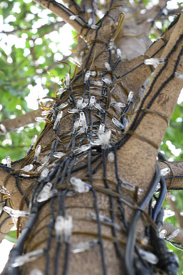 下穴が開いている部分とイルミネーションが取り付けられている部分が混在しています。
