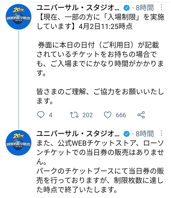まん延防止等重点措置の適用期間中に起こりえる出来事が、4月2日のUSJでありました。