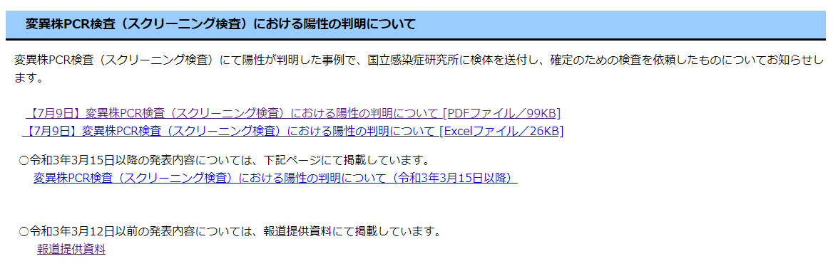 今、この資料の中に、「変異株PCR検査(スクリーニング検査)における陽性の判明について」という項目があり、その資料が公開されています。