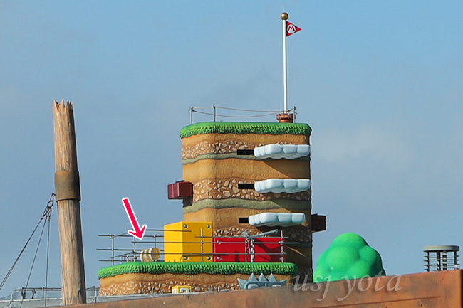天気が良い日にUSJに行き、工事が進む任天堂ワールドの様子を見ると、クッパ城の角が銀色に光る様子を見ることができます。
