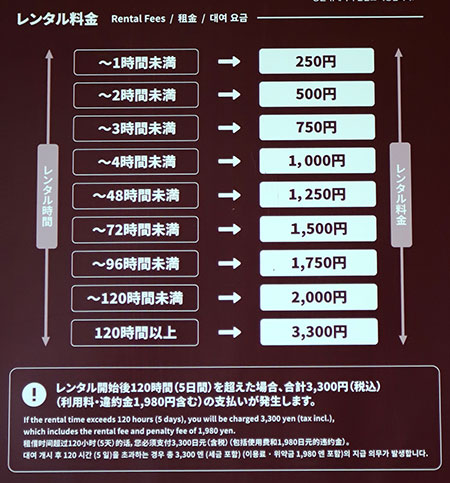 レンタル開始後120時間(5日間)を超えた場合、合計3300円(利用料・違約金を含む)の支払いが発生します。