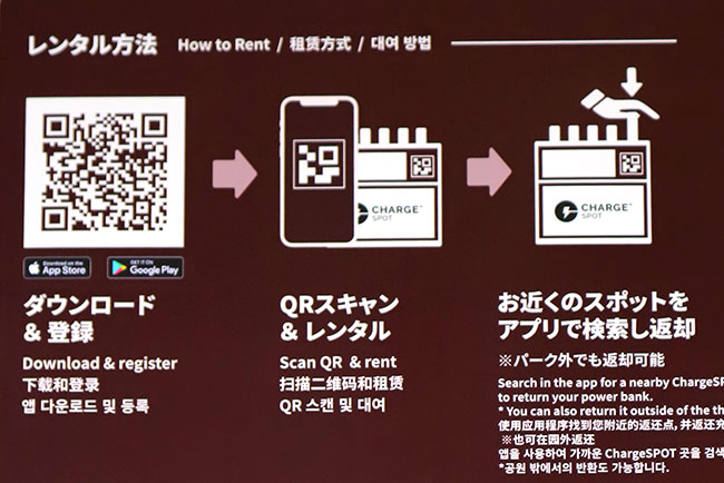 しかし、チャージスポットはバッテリーの貸し出しサービスなので、スマホを使いながら充電可能です。