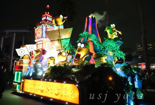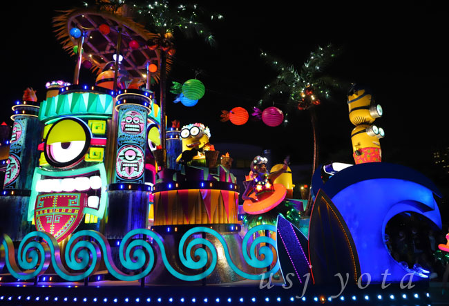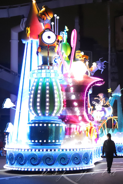 パレードの最後を飾るミニオンのフロートはとても明るくなっています。