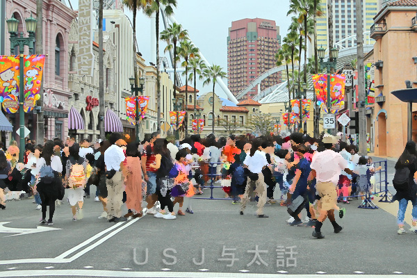 このパレードに限らず、USJのパレード全般で言えることはスタート地点に近いほど混雑して、ゴール地点ほど空いている傾向があります。