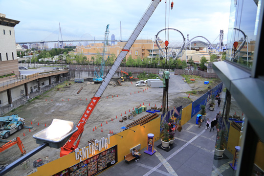 この後、何階まで出来るのか分かりませんが、ユニバーサルポートと同じ程度の高さになれば、上層階からは、パーク内が見えるような気がします。