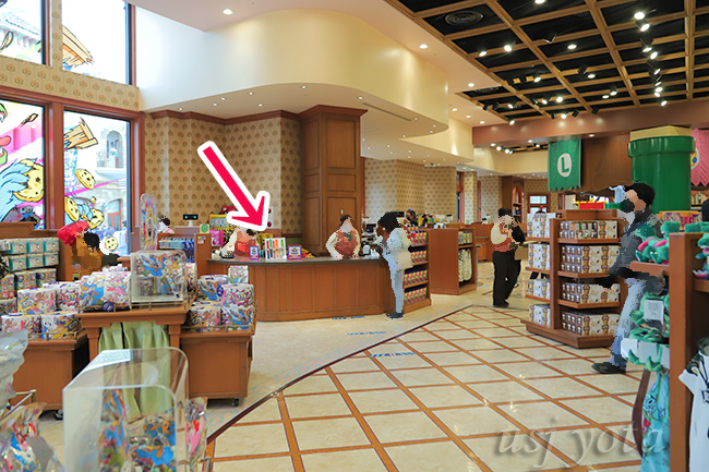 このように3つのショップがありますが、パワーアップバンド引き換え場所に指定されているのは、3のカリフォルニアコンフェクショナリーのレジのみとなっています。