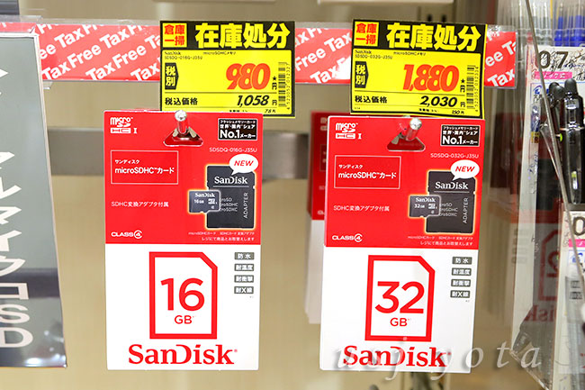 16ギガのSDカードが980円と、家電専門店らしくコンビニよりも手ごろな価格で販売されています。