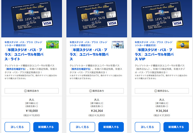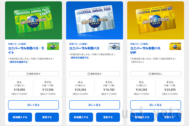と思わせるのが、通常のユニバーサル年間パスの『新規購入』『更新する』のボタンも生きているからです↓