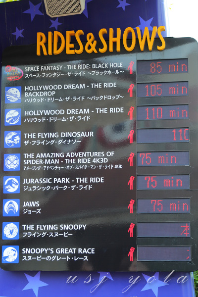 100分を超えたものがあり、混雑はしていますが、200分近いものはなく、大混雑ではありません。