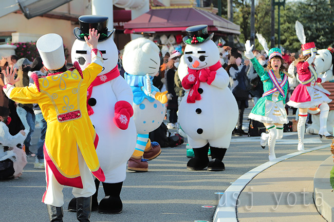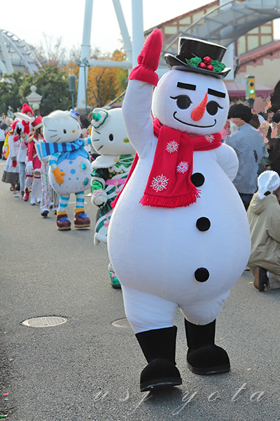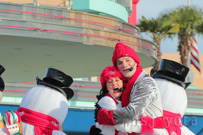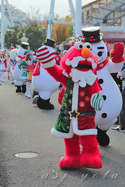 そして、ハッピー・クリスマス・ストリートパーティーは、USJのキャラクター、エルモやキティちゃん、そしてスノーマンも登場する歌とダンスのショーです。