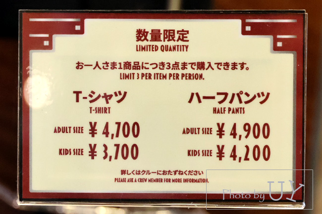 スボンに関しては、裾直しやサイズなどの理由があるのかもしれませんが、USJ内のショップで見かけた記憶がありません。